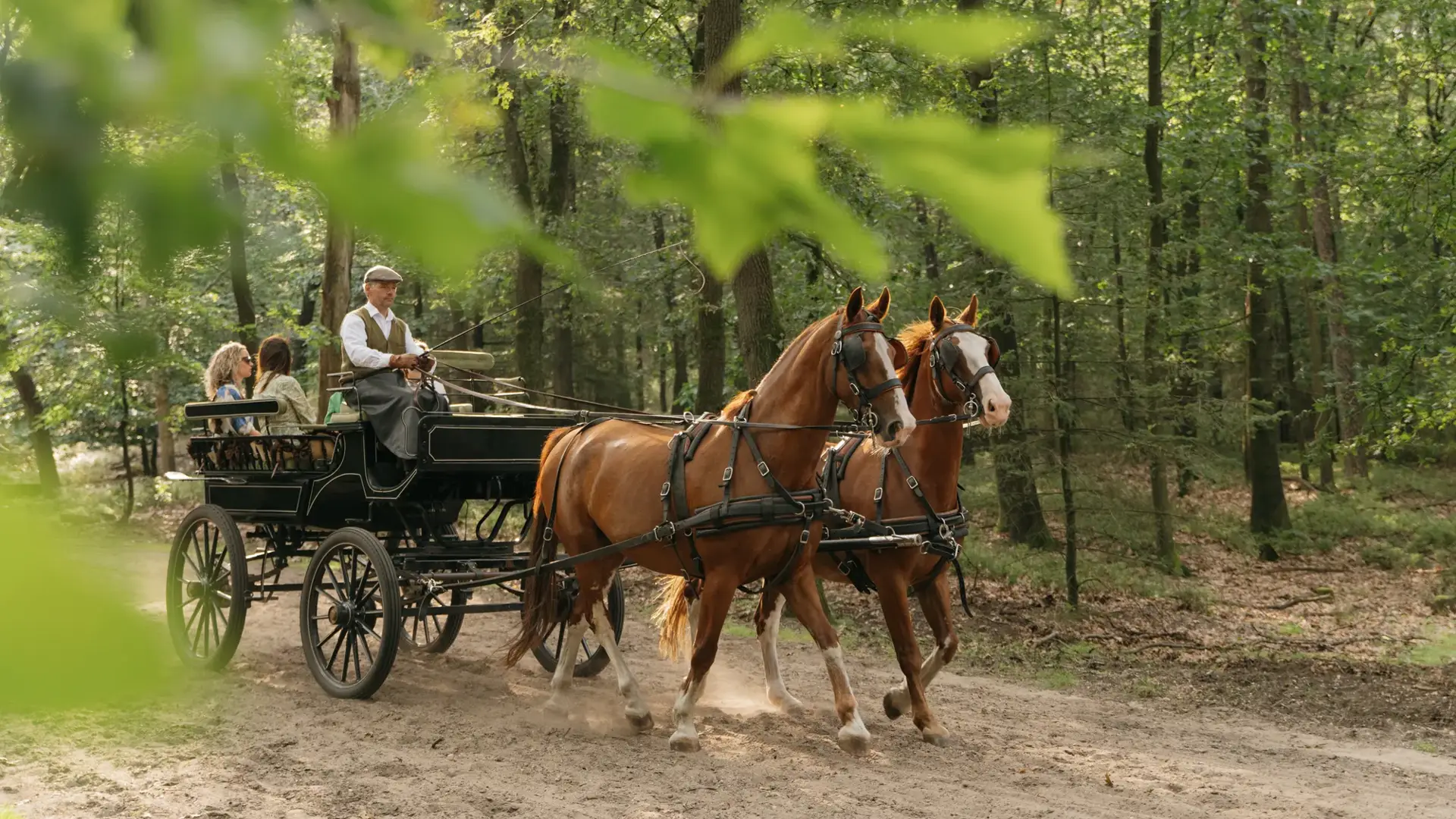 Steigen Sie mit Ihrer Gruppe in eine unserer offenen Kutschen und erleben Sie die Veluwe wie früher. Unsere Kutscher nehmen Sie privat mit auf eine besondere 1,5-stündige Fahrt durch die Wälder zur Hoog Buurloser Heide. Unterwegs hören Sie nur den sanften Rhythmus der Pferdehufe und genießen die wunderschöne Natur. An einem malerischen Aussichtspunkt machen wir Halt für einen Snack und ein Getränk. Der perfekte Moment, um die Stille und die Aussicht gemeinsam zu genießen.