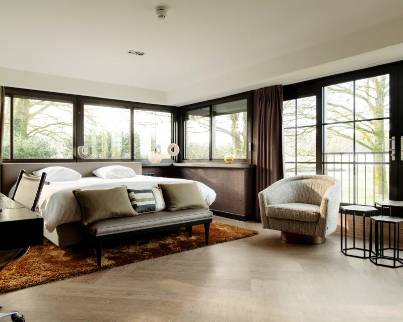 Diese Hotelsuite ist modern eingerichtet und befindet sich im 1. Stock des Hotels. Das Zimmer hat einen schönen Panoramablick über den Ank und ist mit einem französischen Balkon ausgestattet. Das offene Badezimmer verfügt über eine Whirlpool-Badewanne, ein Doppelwaschbecken, eine geschlossene Dusche und eine geschlossene Toilette. Darüber hinaus verfügt das Zimmer über exklusive 'Nilson Beds' Boxspringbetten mit ein Doppel Topper, einen Flachbildschirm, einen Schreibtisch, einen komfortablen, attraktiv eingerichteten Sitzbereich, ein Telefon, kabelloses Audio für das Hotelzimmer, Kaffee- / Teezubehör (Nespresso), einen Kühlschrank mit 2 Flaschen Wasser und kabelloses Internet als Standard. Die Zimmer sind klimatisiert. Hunde sind nicht erlaubt.