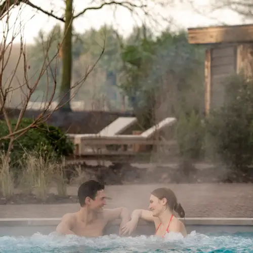 Imagine: a sunny winter afternoon or a balmy summer evening where you can enjoy the starry sky or the setting sun in our atmospheric garden. The wellness garden of Van der Valk Hotel Apeldoorn - De Cantharel is an oasis of tranquility. From the hotel, you walk along a cobblestone path to this secluded garden and step into a mini-spa with a pool, bubbling benches, relaxation areas, sauna cabins, and outdoor showers. You can swim from the outdoor pool inside, where comfortable sunbeds and showers await you.