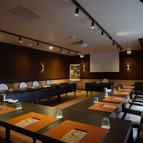 Our rooms are designed with an eye for comfort and inspiration. From the modern auditorium 'De Hoge Veluwe' to cozy meeting rooms in the main building: each space exudes the atmosphere of the Veluwe and can be flexibly arranged. Whether it's breakout sessions, workshops, or drinks, thanks to subspaces and audiovisual equipment, De Cantharel offers the perfect setting for every gathering.