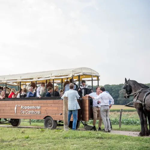 Step back in time with our horse-drawn tram. Pulled by powerful horses, you will ride peacefully along the forests and heathlands surrounding Van der Valk Hotel Apeldoorn - De Cantharel. Enjoy the rhythm of the hooves, the silence of the Veluwe, and the nostalgic view. A relaxing outing for families, couples, and groups.