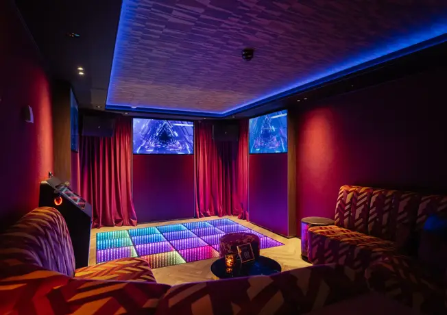 Watch your favorite movie, series, concert, sports event, or live TV in intimate company. With a room-wide screen and state-of-the-art Bowers & Wilkins 7.4.2 Dolby Atmos sound and image, you will feel like you are in a real cinema.