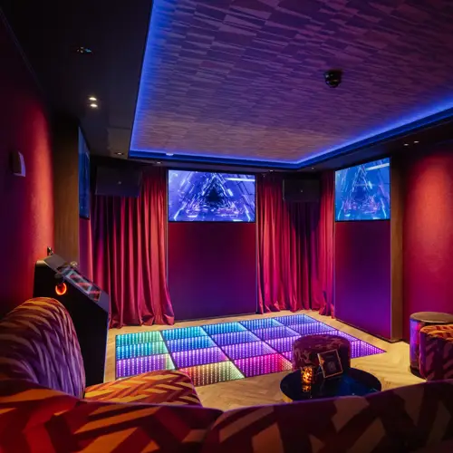 The Q Lounge bij Van der Valk Hotel Apeldoorn – De Cantharel is dé plek voor exclusief entertainment. Ontdek onze privébioscopen met Dolby Atmos-geluid of zing mee in onze karaokelounge met lichtgevende dansvloer.